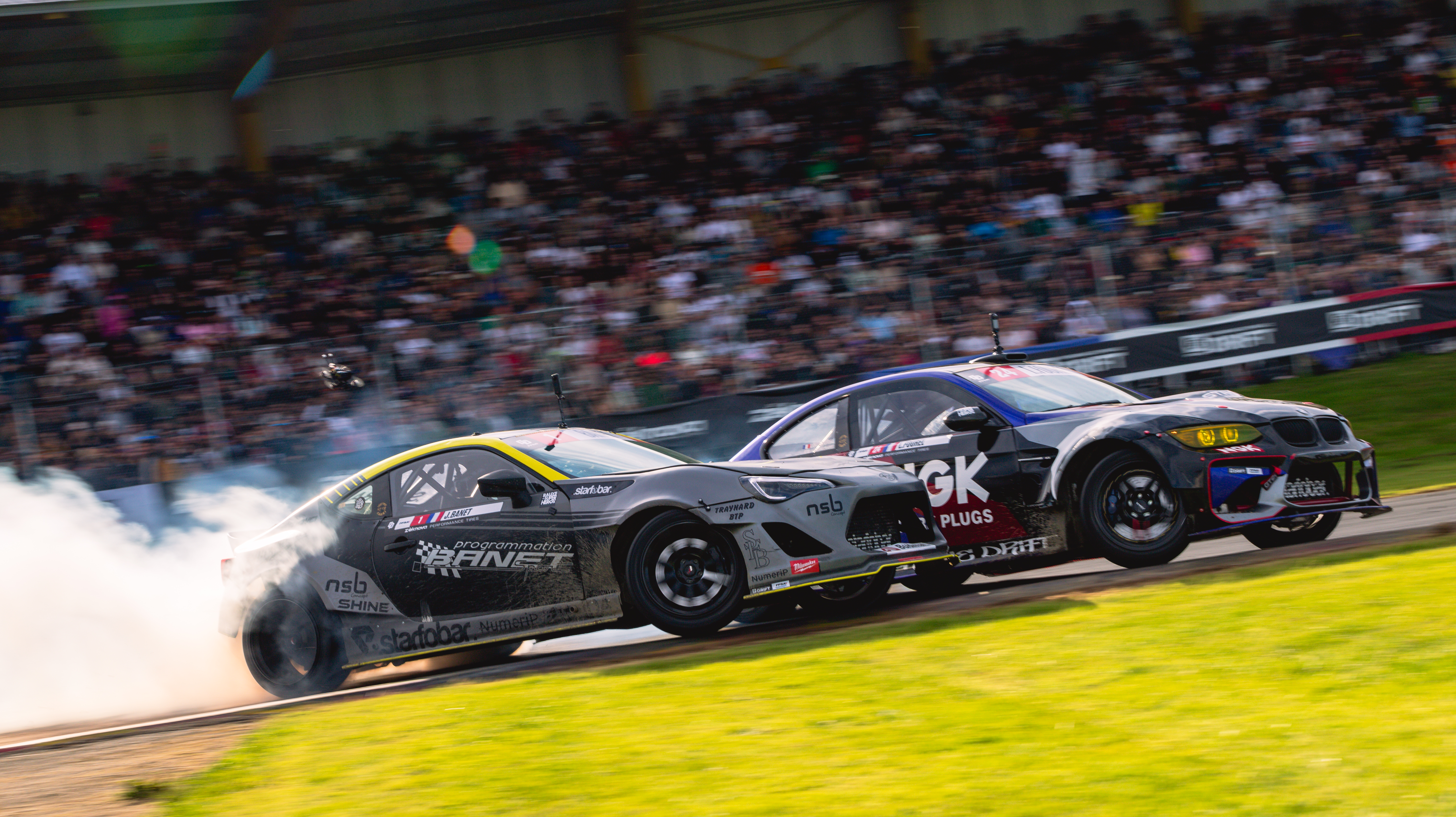 Les autos, développant jusqu'à 1200cv aux roues arrières, glissent sur une piste 100% asphalte. DRIFTER, c'est allier pilotage et glisse !